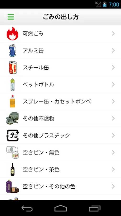 品目毎にごみの捨て方を確認できます。探しているモノを簡単に見つけることができます。