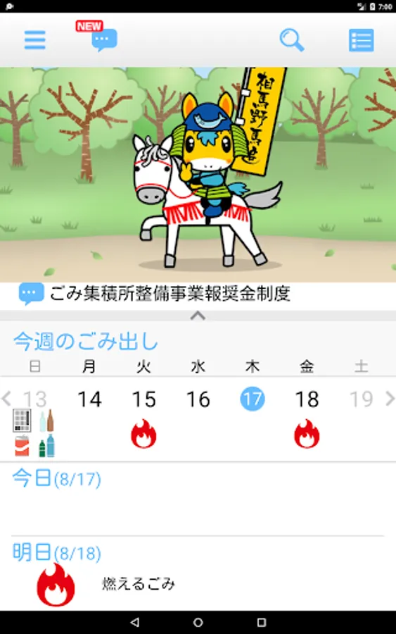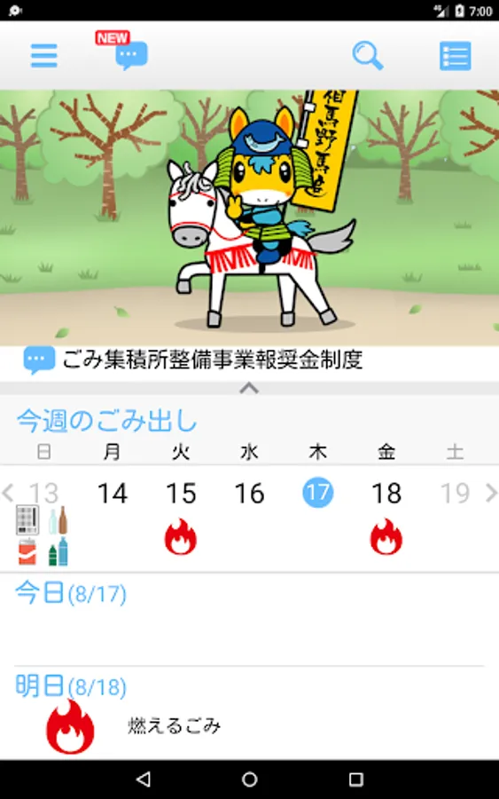 Today and tomorrow, every week, you can see immediately in three patterns by one the garbage collection schedule screen of each month.