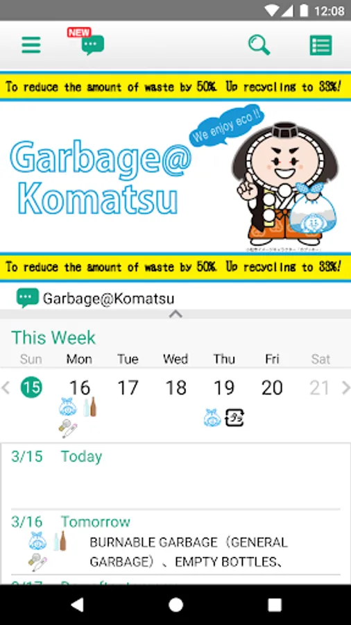 Fret not, Komatsu City has released a new application that allows you to easily check various garbage-related information, with just a smartphone by your side. This includes information on garbage collection dates, disposal procedures, important pointers about disposal, a glossary of items sorted by garbage type, and other FAQs.