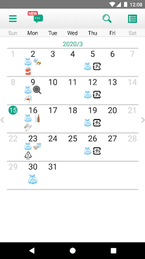Three calendar formats are available (①Today and tomorrow's schedule, ②Schedule of the week, ③Schedule of the month), allowing you to check the garbage collection schedule at a glance.