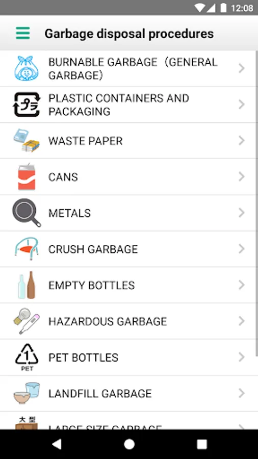 Allows you to check the disposal procedures for each individual item. Equipped with a sophisticated search system, allowing your to find the desired item easily.