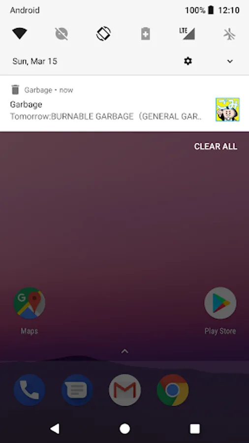 Receive alerts for the garbage types scheduled for collection, on the actual day and day before collection. You can choose what time to receive the alerts as well.