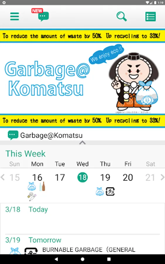 Receive notifications on information such as changes in collection dates and disaster updates.