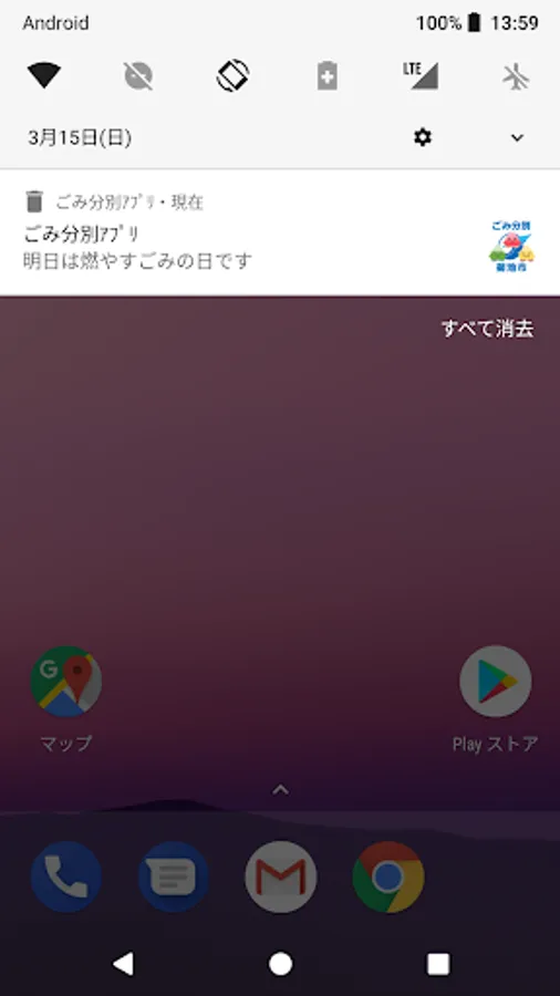 We will notify you by alert the day before and the day of the sorting of garbage to be collected. The time can be set freely.