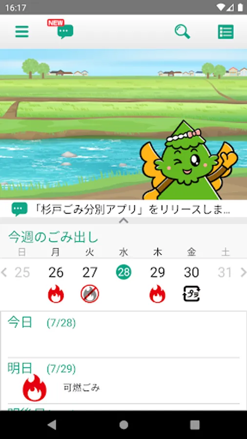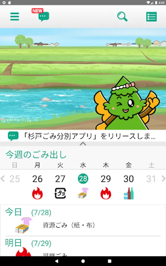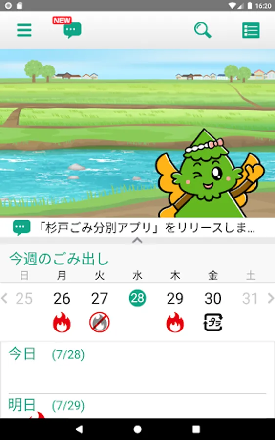 If you register your district, you can check the three patterns of garbage collection schedules, "Today and Tomorrow", "Weekly", and "Monthly" on one screen.