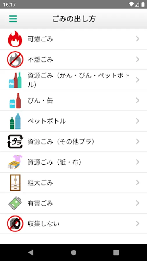 "Sugito Garbage Sorting App" is an app that allows you to check the collection date, how to dispose of Sugito garbage, and precautions when disposing of it.