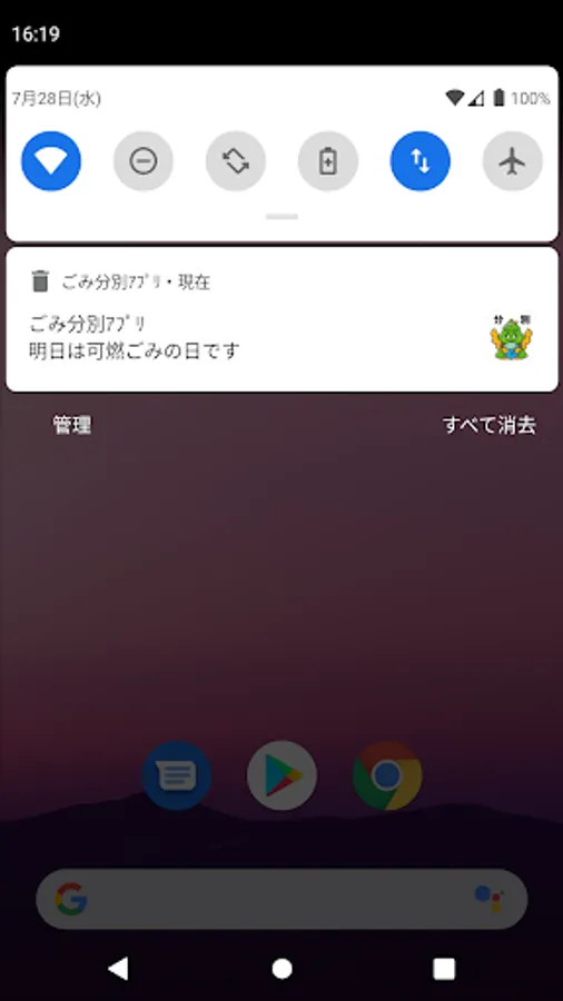 We will notify you of the type of garbage you plan to collect by alert the day before and the day of the event. The time can be set freely.