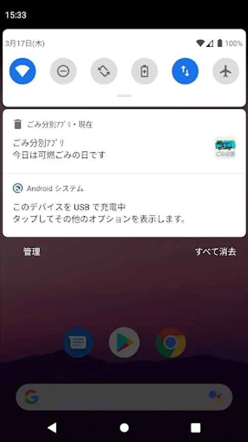 We will notify you of the type of garbage to be collected by alert the day before and the day of the event. The time can be set freely.