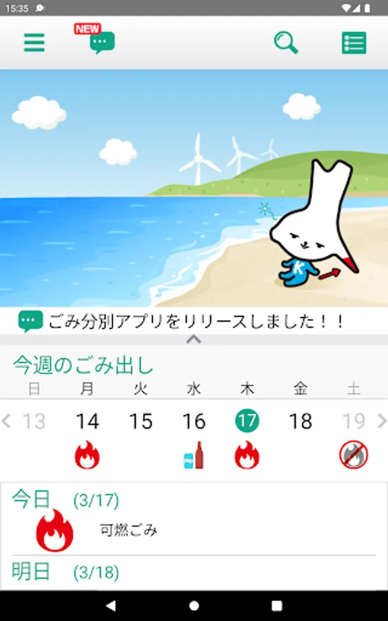 You can immediately check the garbage collection schedule in 3 patterns of today, tomorrow, weekly, and monthly on one screen.