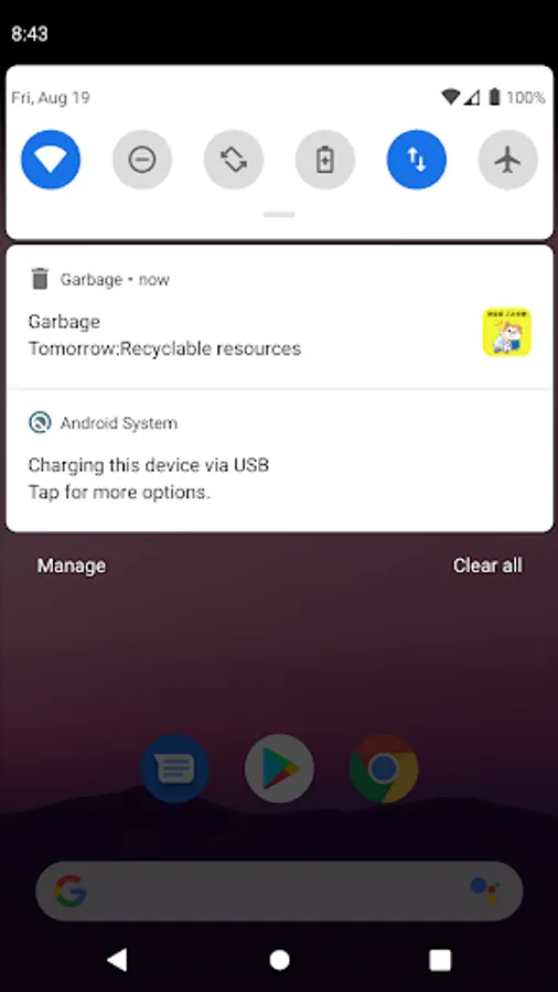 You can receive an alert to tell you about scheduled garbage collection on the day before and the day of collection. You can also set the time you want to receive alerts.
