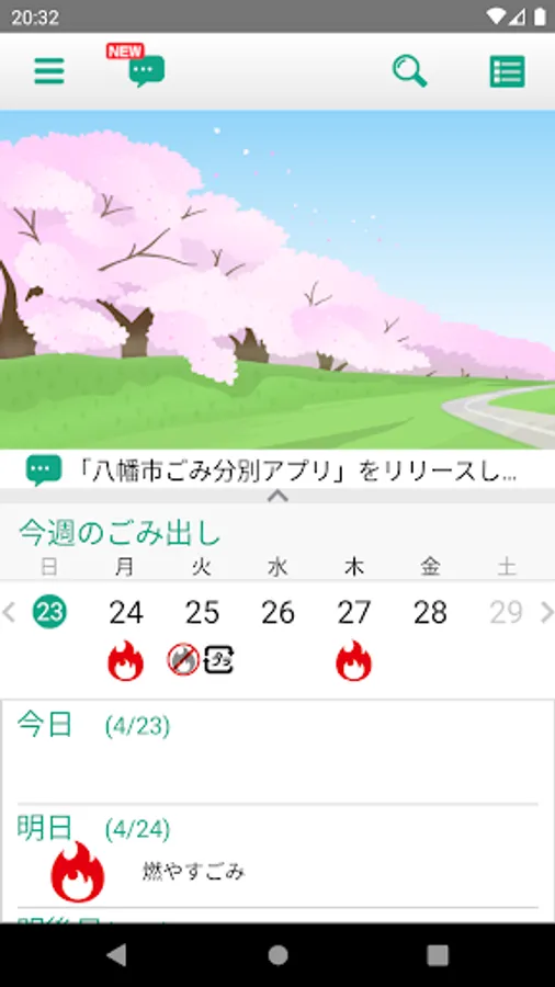 You can immediately check the garbage collection schedule in 3 patterns: today, tomorrow, weekly, and monthly on one screen.