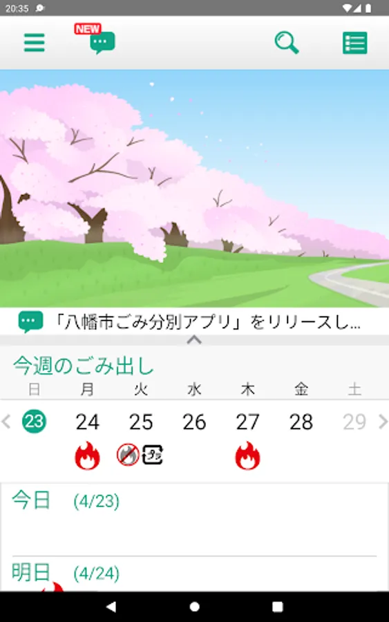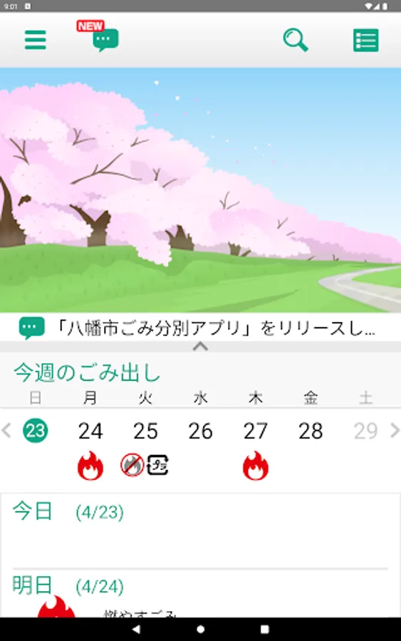 The Yawata City Garbage Separation App is an application that allows you to easily check various information about garbage, such as garbage collection dates, how to dispose of garbage, precautions when disposing, a garbage separation dictionary, and frequently asked questions, using a familiar smartphone. Released.
