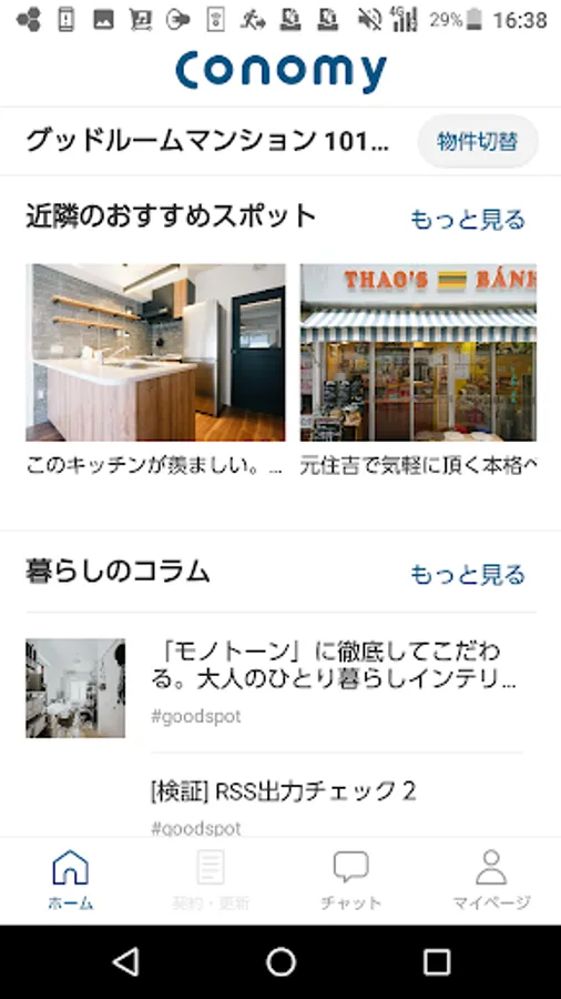 管理会社様からのお知らせや物件情報、契約書類もアプリ上で確認できます。