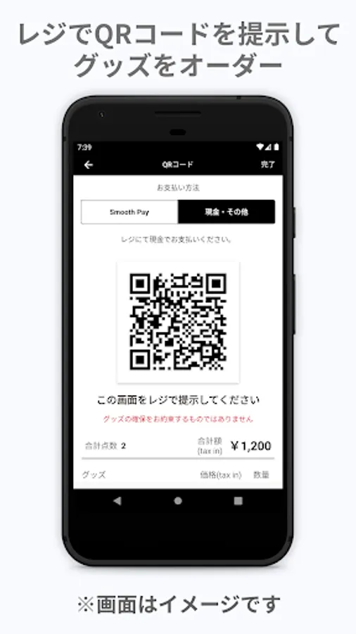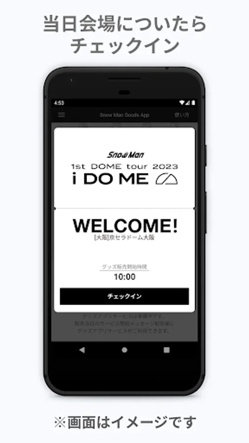 This is an app that allows you to list the goods you want to purchase at the goods sales venue of the "Snow Man 1st DOME tour 2023 i DO ME" concert in advance, and then simply place an order by presenting the QR code at the cash register.