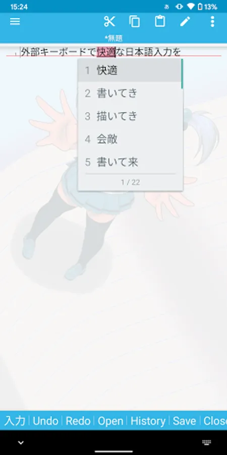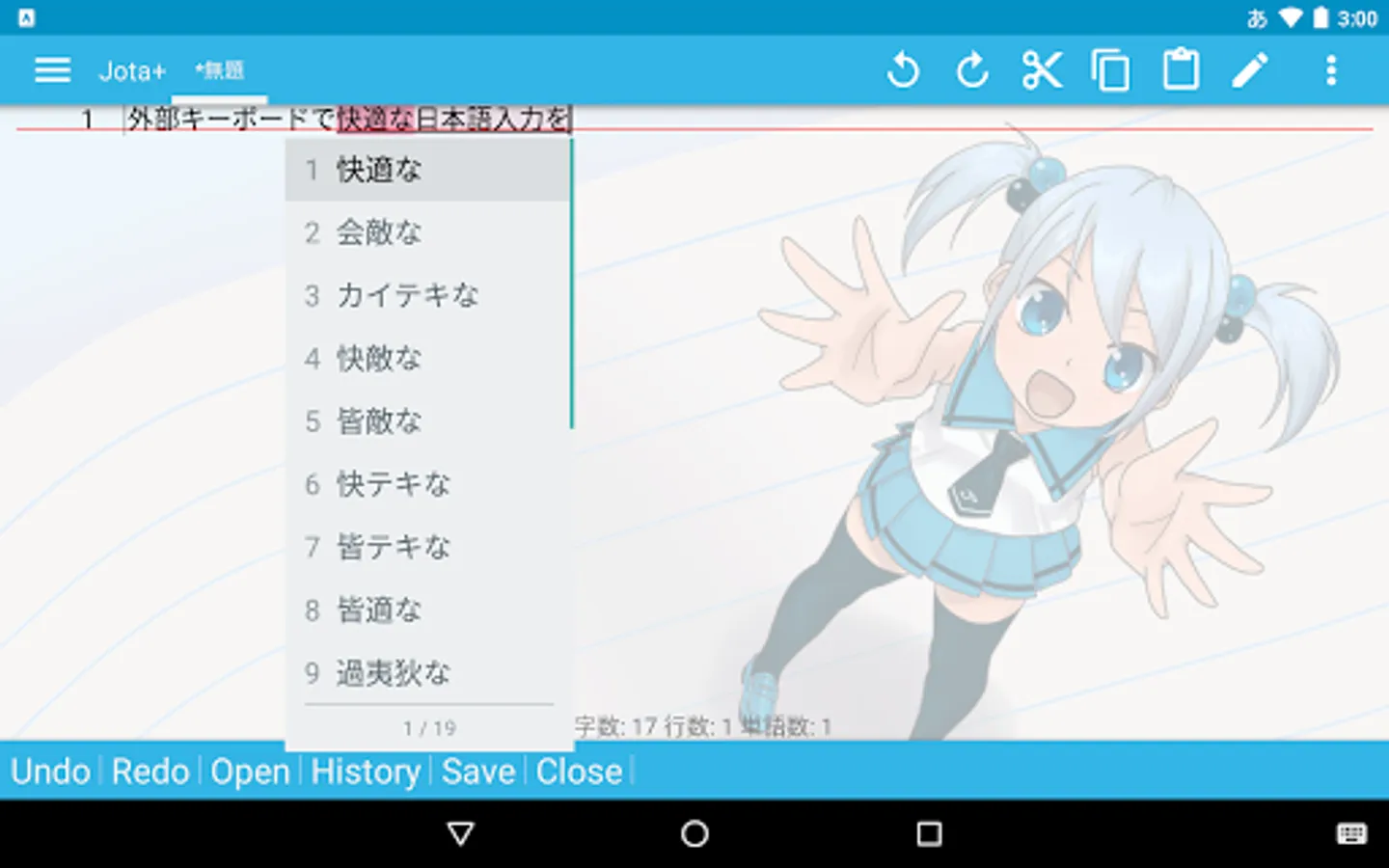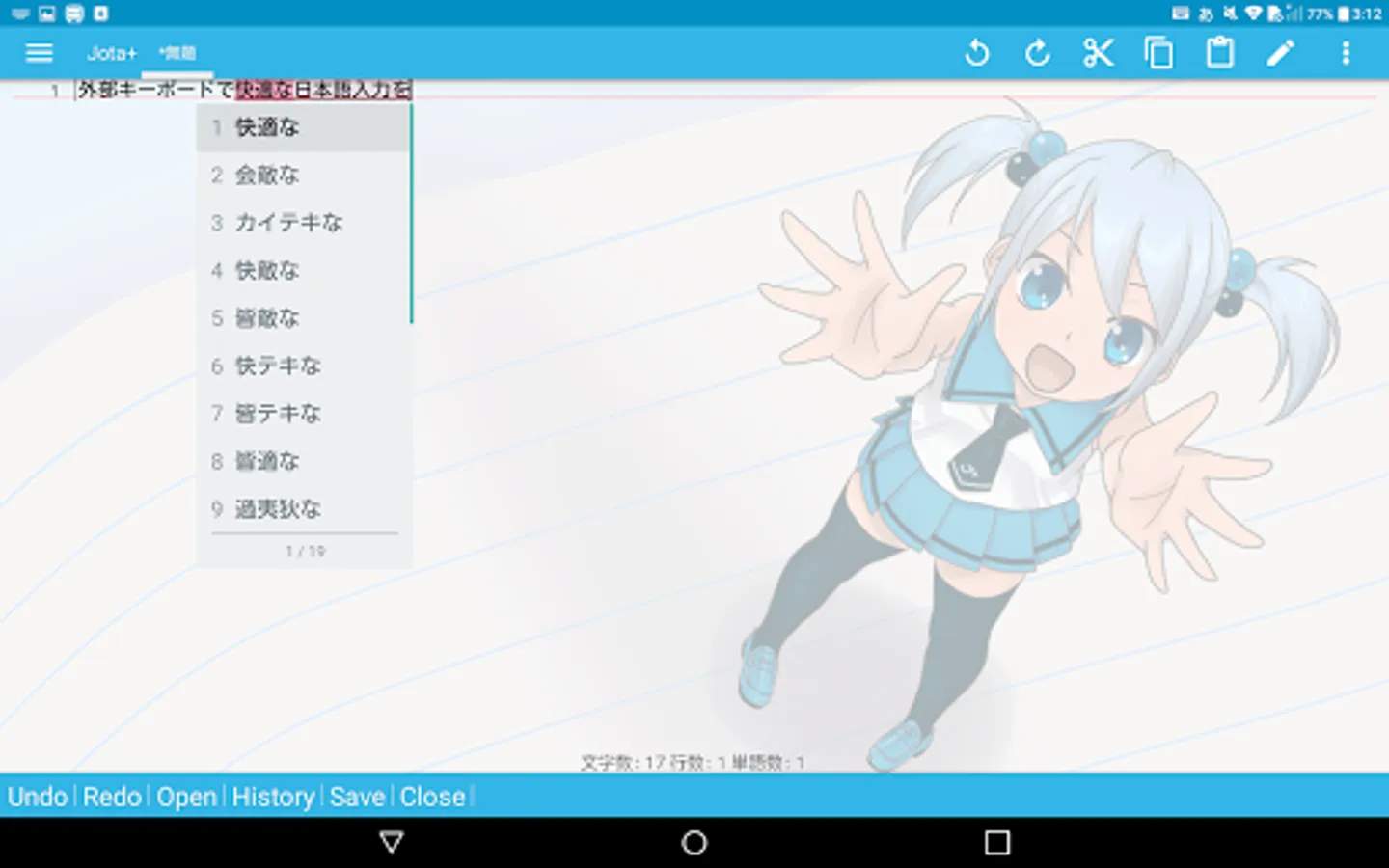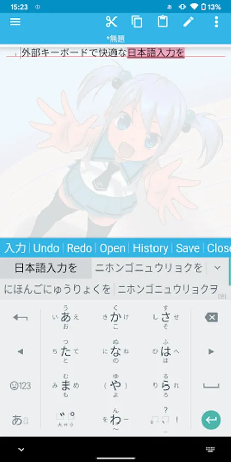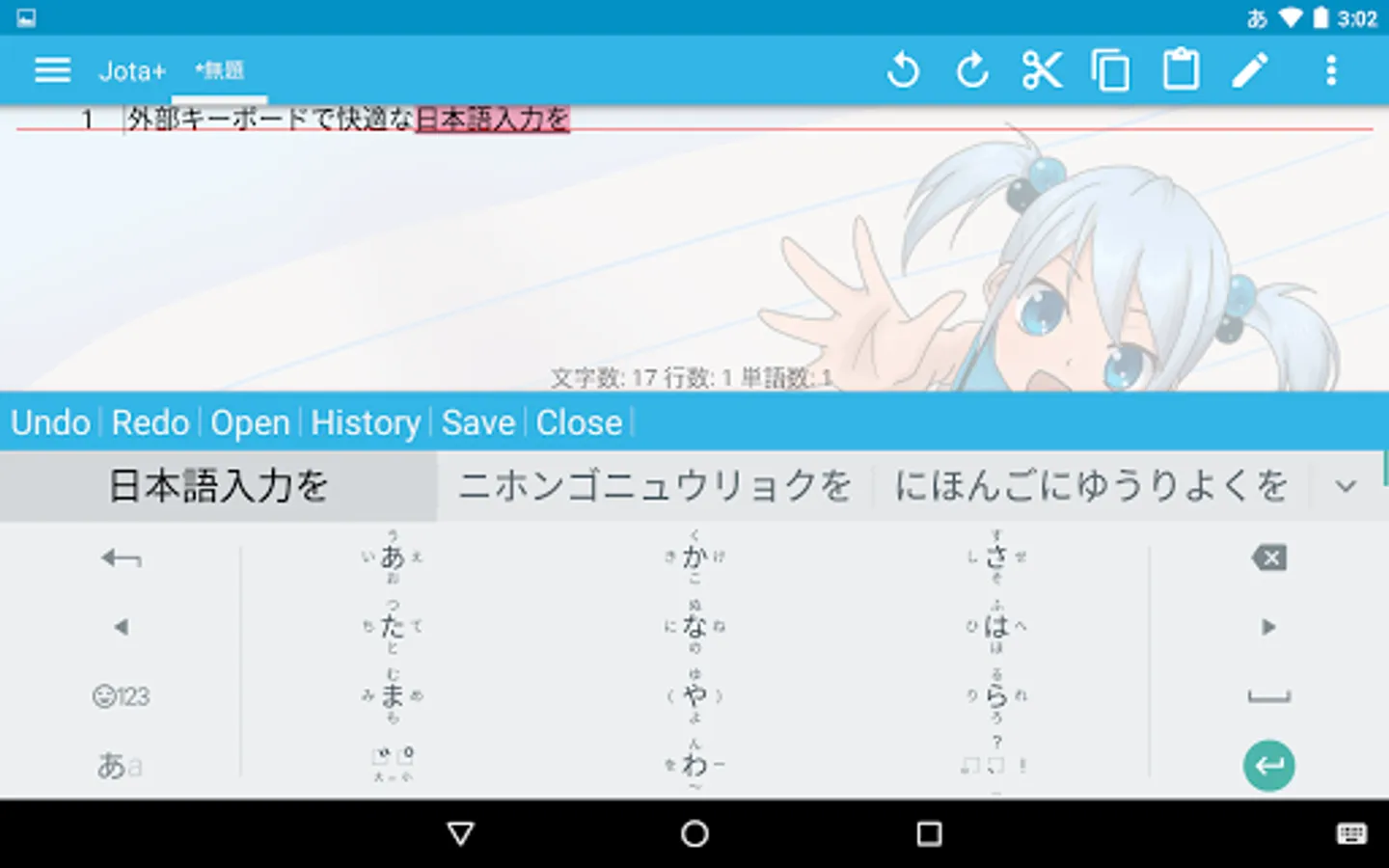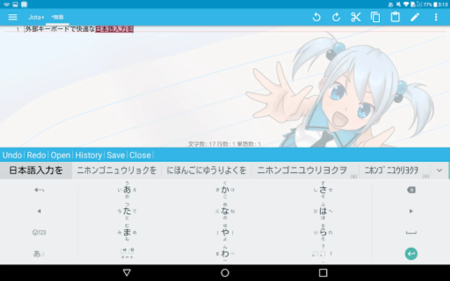 This application has functions such as key binding support for major IMEs for personal computers, US layout / JIS layout / JIS layout kana input support, and conversion / non-conversion key to switch between Japanese and English, and requires keyboard control similar to that of a personal computer. Ideal for users.
