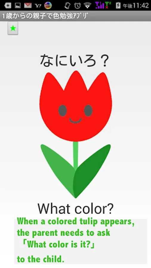 When a colored tulip appears, the parent needs to ask「What color is it?」to the child.