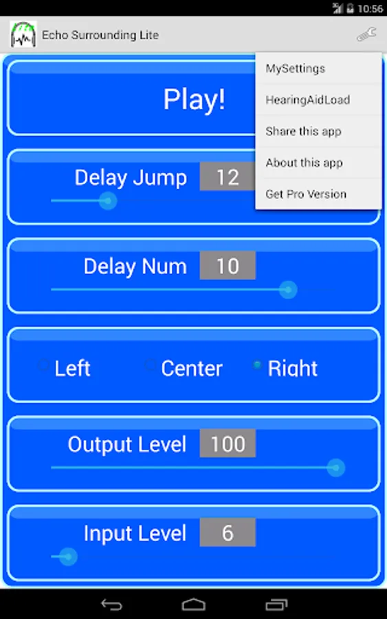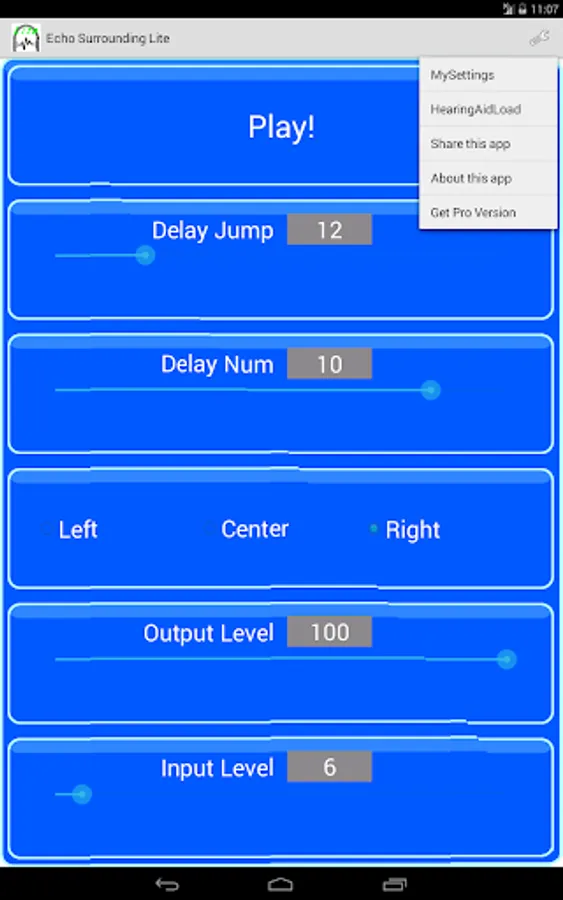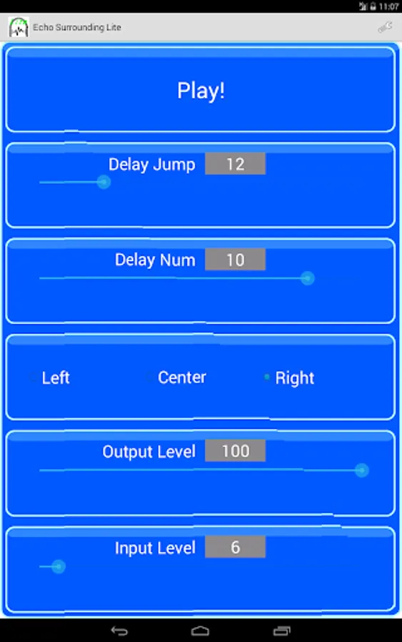 You can adjust delay jump, delay num, Left or Center or Right, output level, input level.