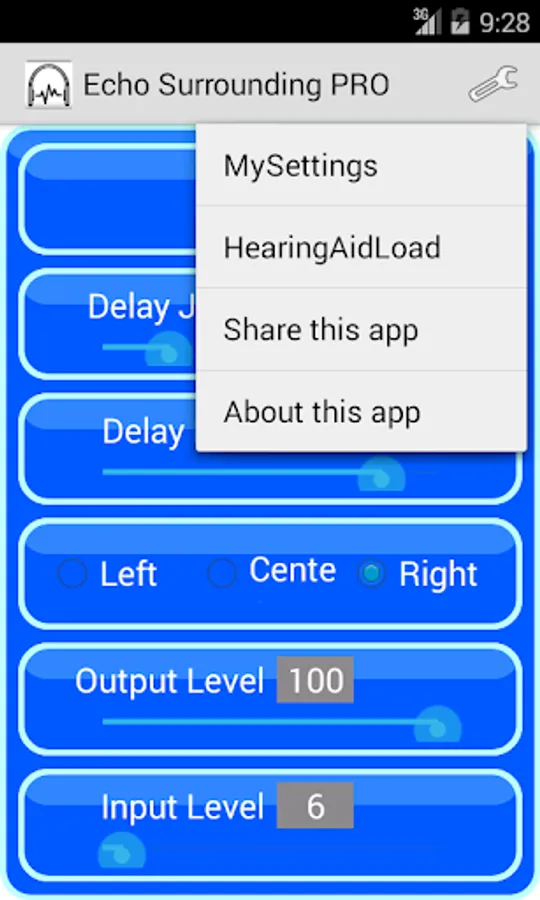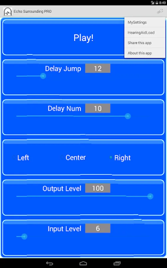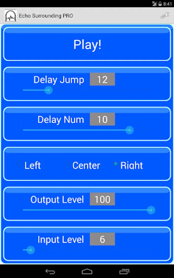 You can adjust delay jump, delay num, Left or Center or Right, output level, input level.