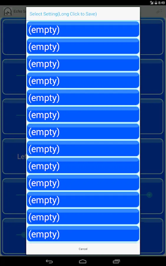 This app makes echoes of the sounds come into device's mic.Headphone needed.(Bluetooth also available)