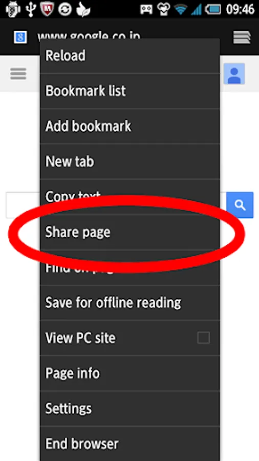 3.Push 'Share page' or 'Share' (Text varies depending on your browser.)