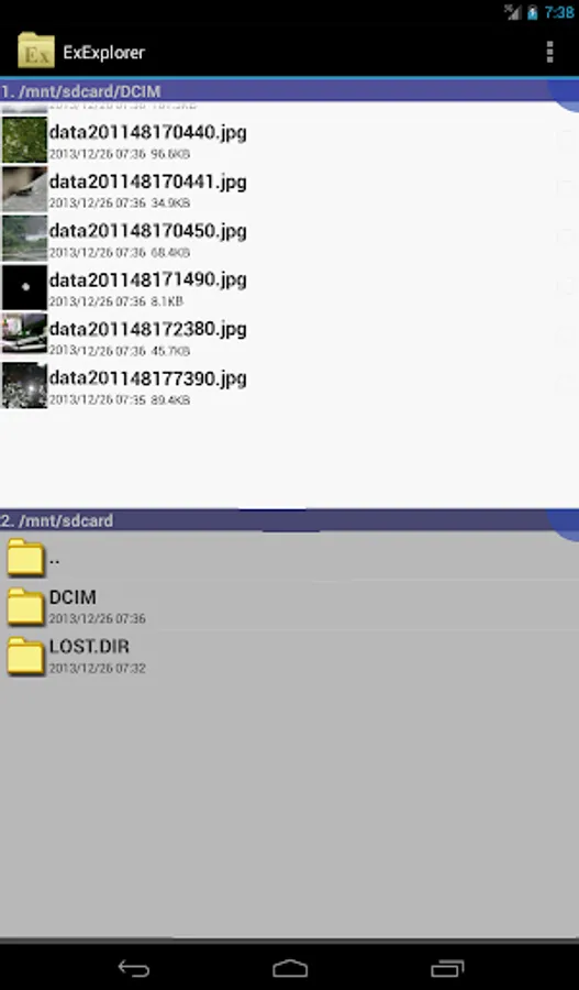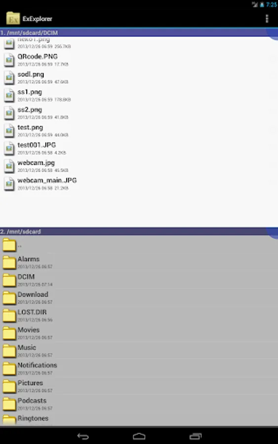 Ex Explorer is application for file explorer(file manager). This app can show two file list.