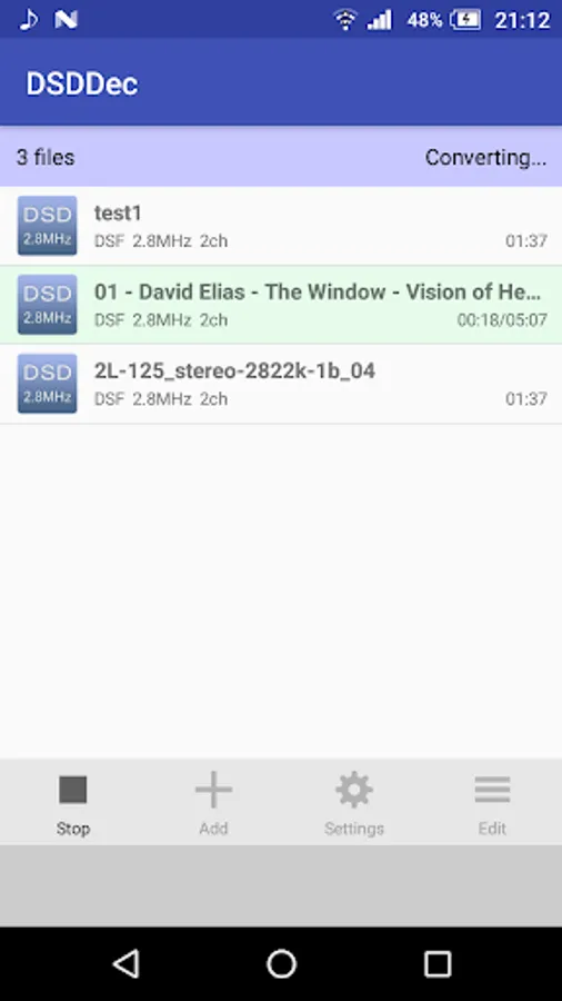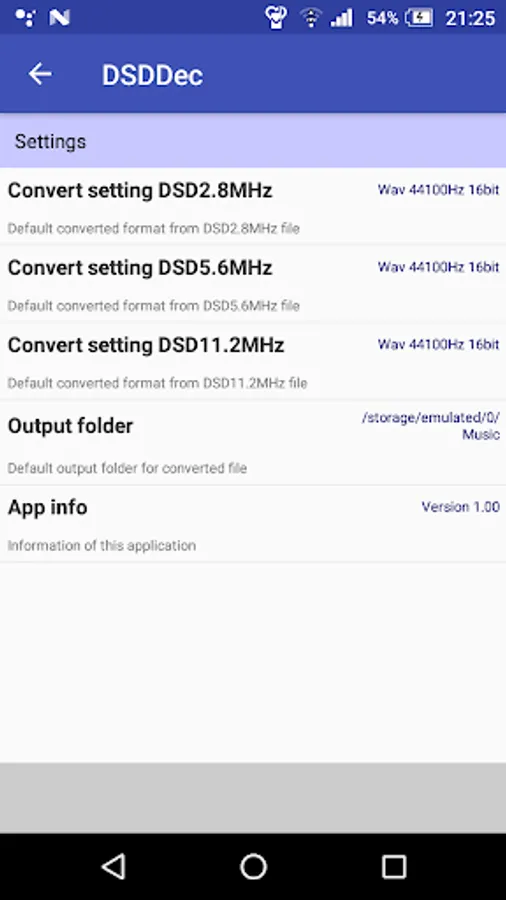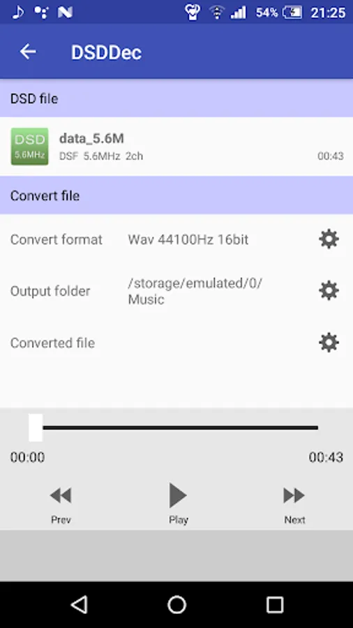 This application converts the DSD file to Wav file (uncompressed PCM).
