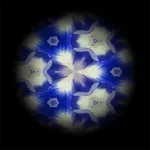 In this photography app, users can create and capture kaleidoscope images from the camera view. Includes camera selection, size adjustment, and photo viewing features.