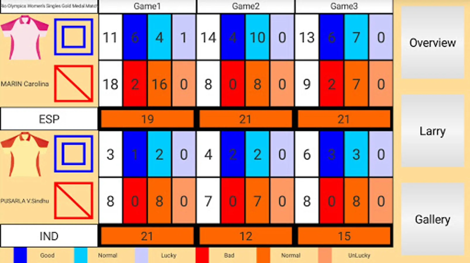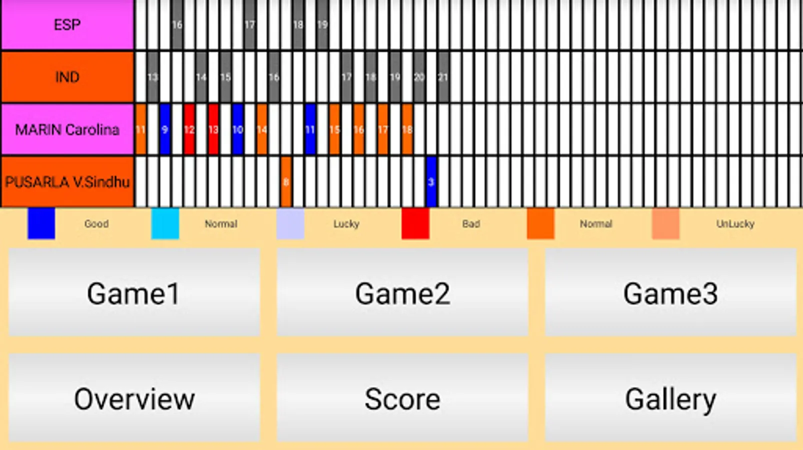 In Badminton Manager, a "mistake" and "ace" in the game, classified into each of the three types, a total of six, and record.