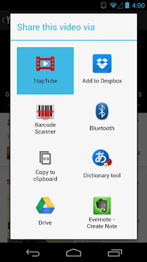 The easy operation. Chooses "Share" -> "1tapTube" from YouTube app.