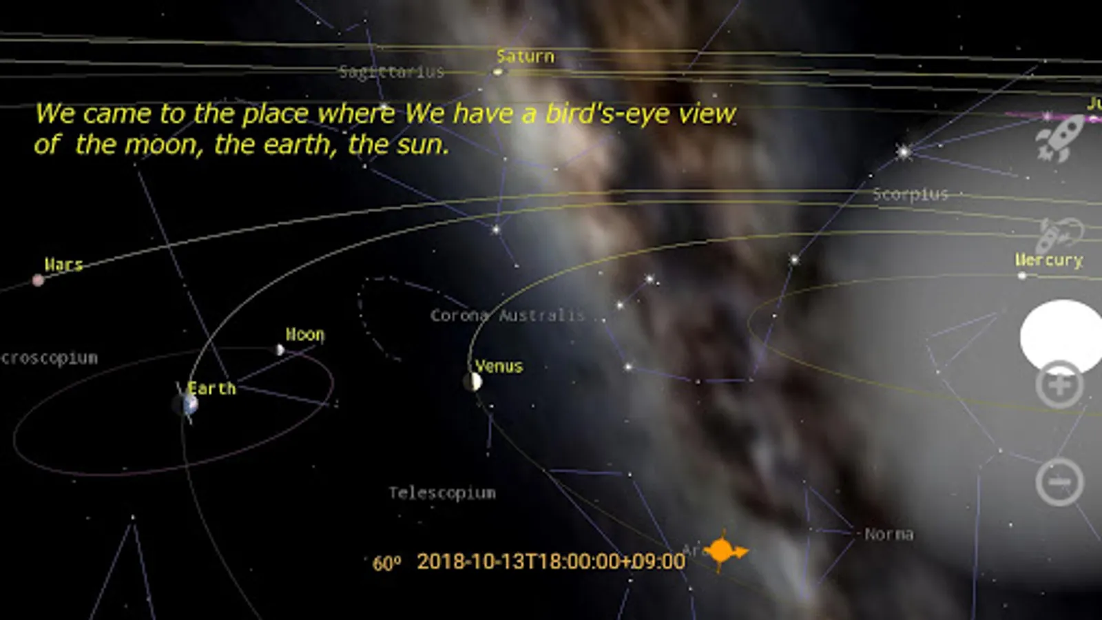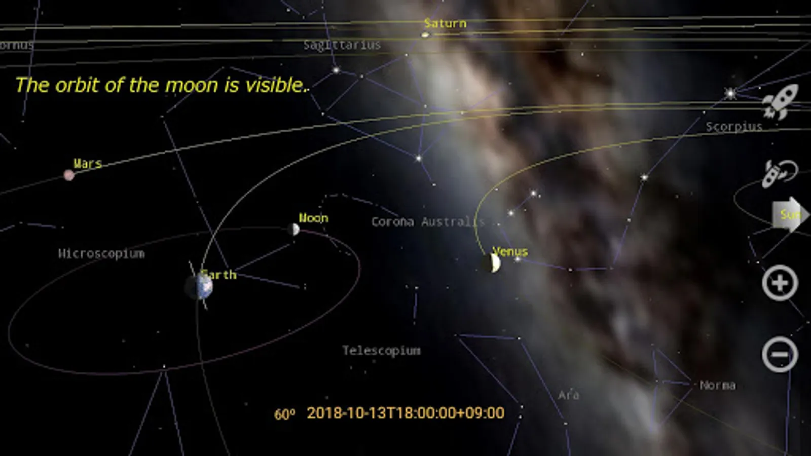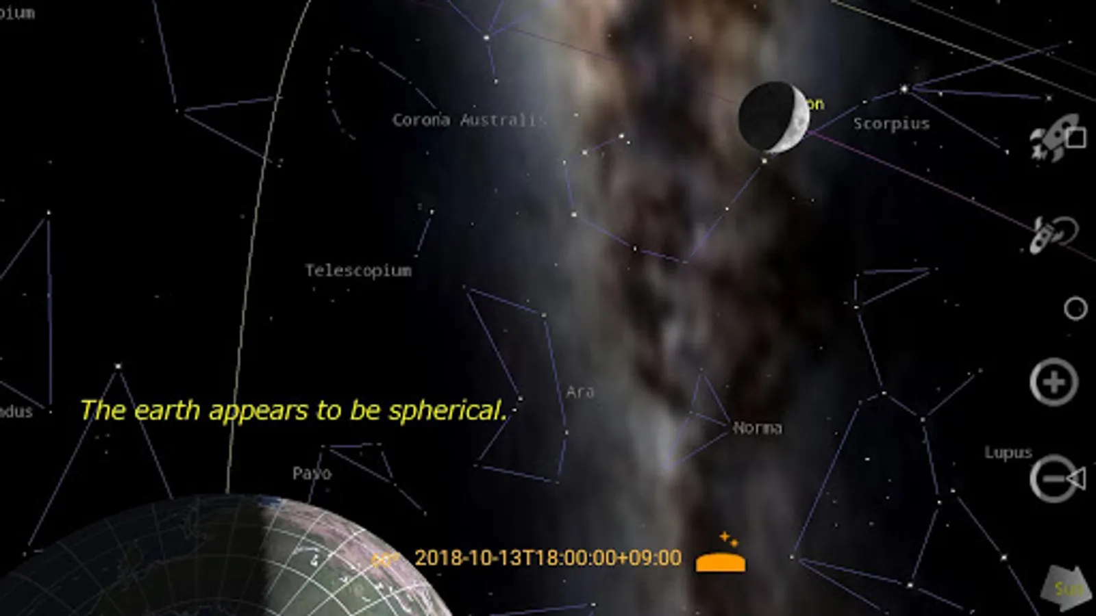 + Search for constellations, stars, planets, etc