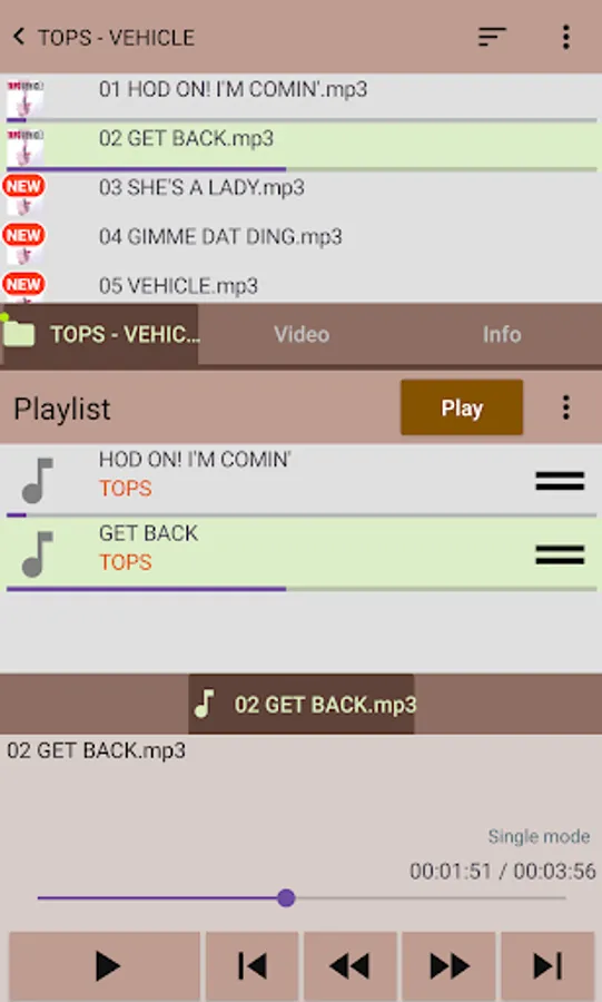 This application is a media player that plays music and video files stored on the smartphone itself or SD card.