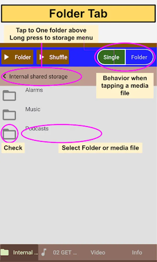 If the folder you want to play is not displayed (if the MediaStore has been modified to prevent detection) or if you want to play a file from a USB memory stick, use "Browse (StorageAccessFramework)".