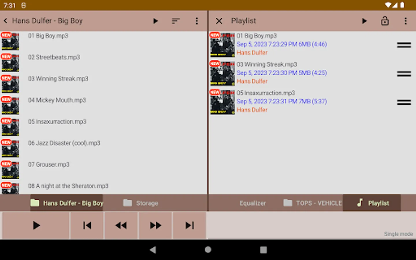 From the folder tab, you can long press on a file or folder and check multiple files to register them to the playlist.