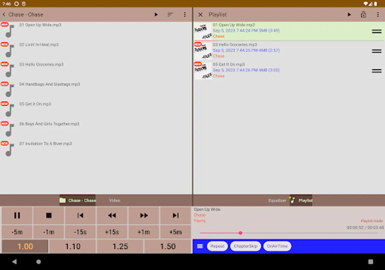 Playback position can be stored as a chapter. Comments can be added. Tap to recall and loop chapters. Chapter information is stored in the application.