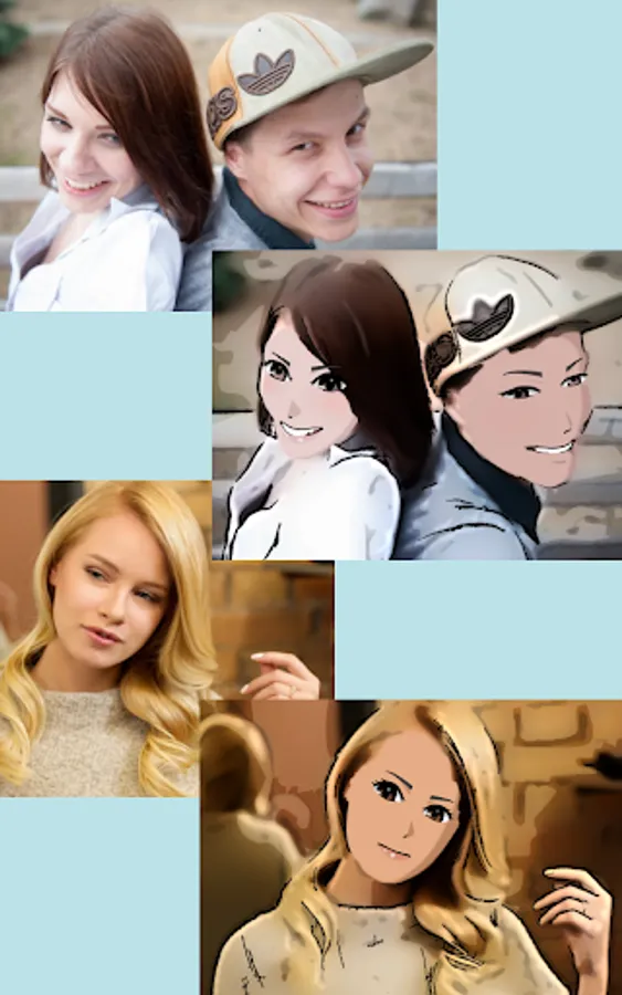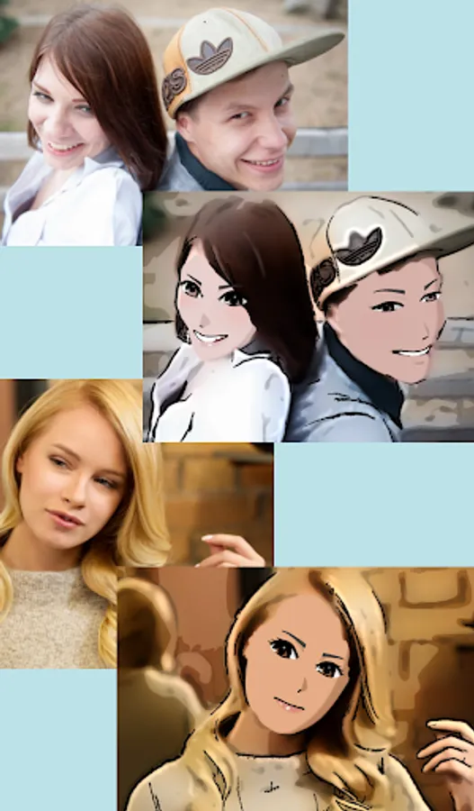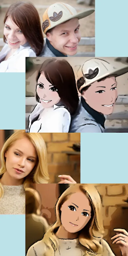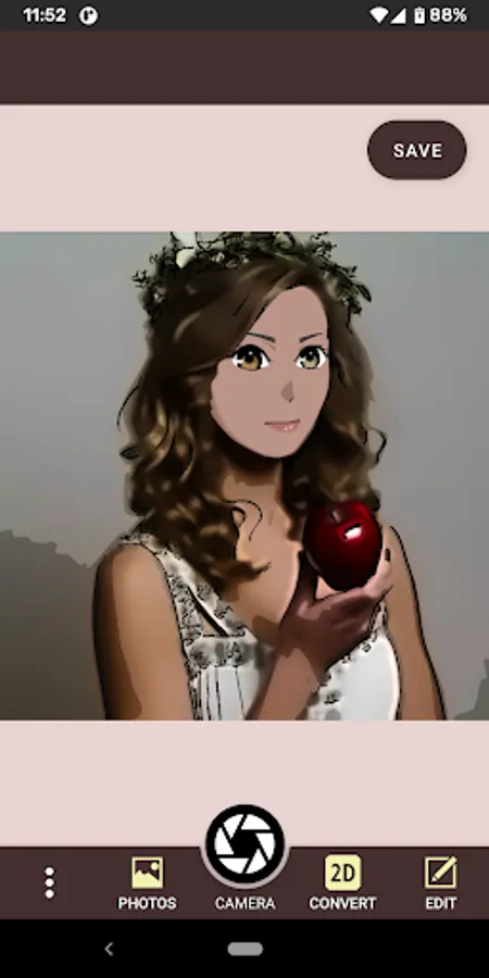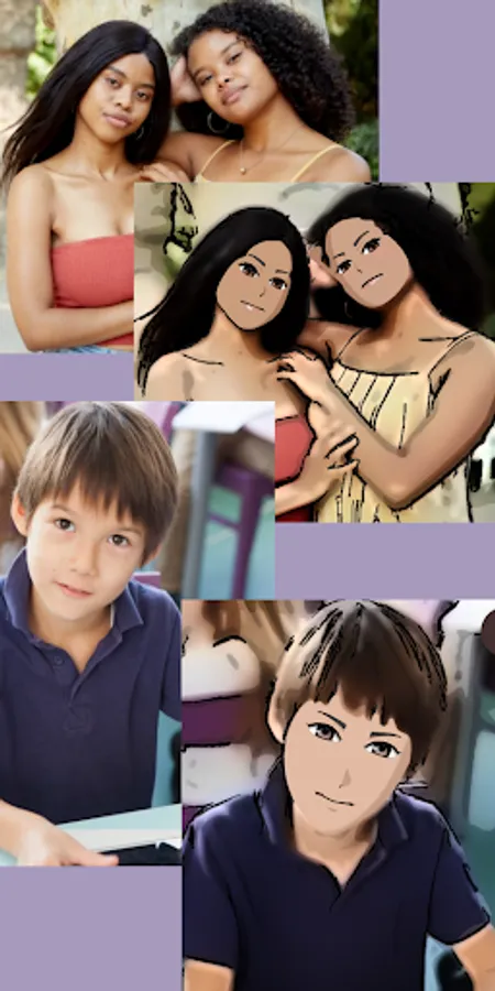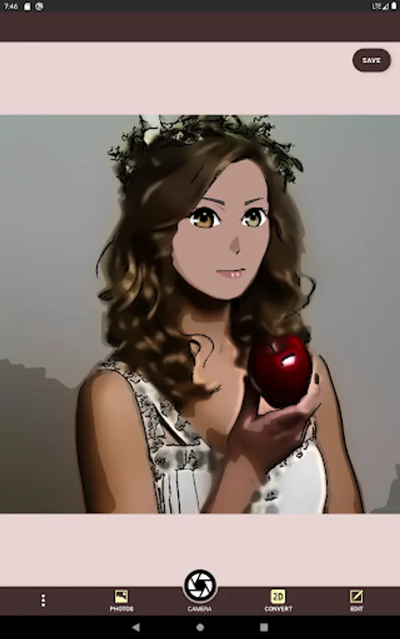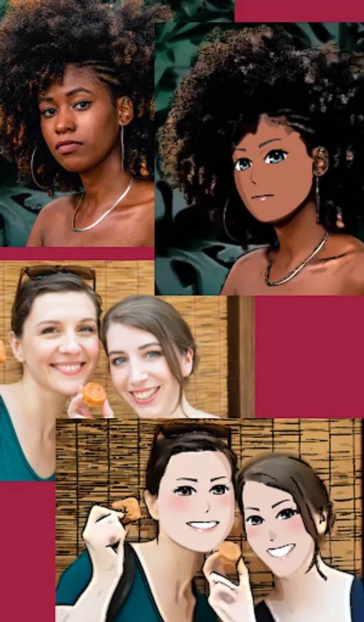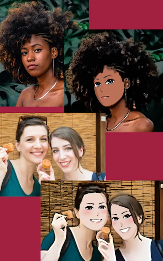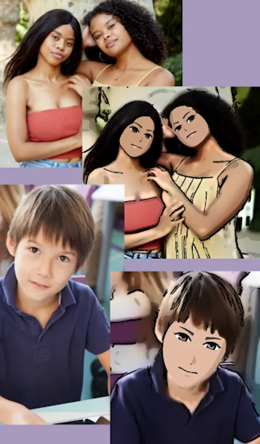 Select from the list in [PHOTO] or take a photo from [CAMERA] and convert it to anime style by automatically determining the person gender with [CONVERT].