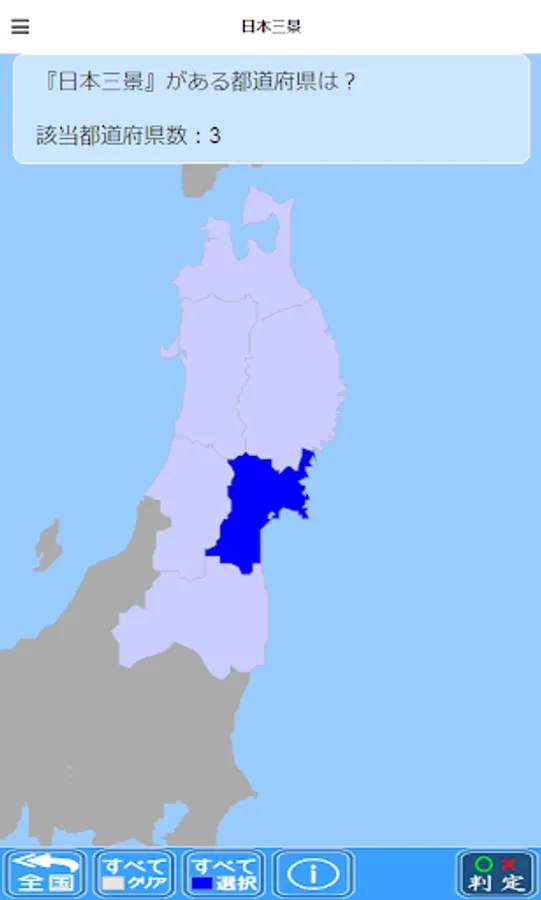 - Quiz to choose a prefecture with "mountain", "river", or "island" in the prefecture name