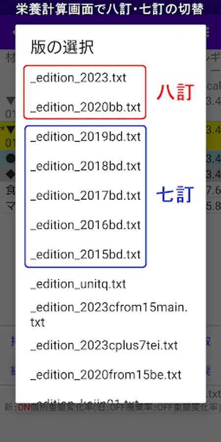 -You can calculate nutrition by switching on the nutrition calculation screen for each year version from 2015 to 2023.