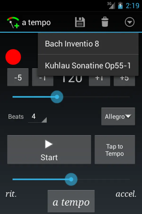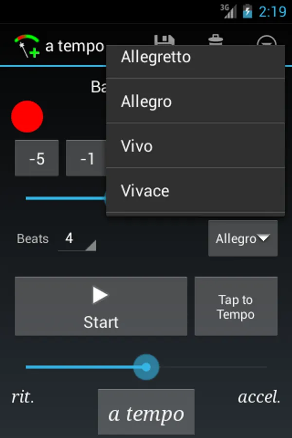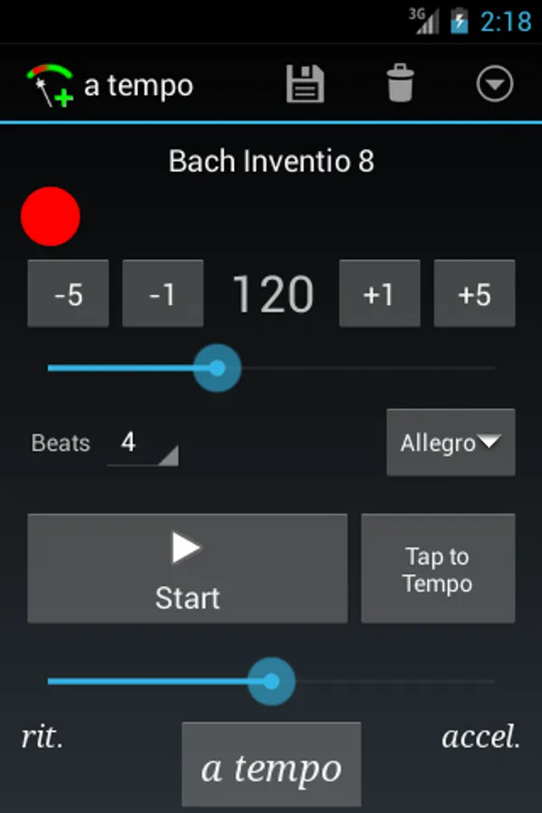 - The tempo can be set by the number of beats per minute (from 10 to 300), or by the tempo markings.