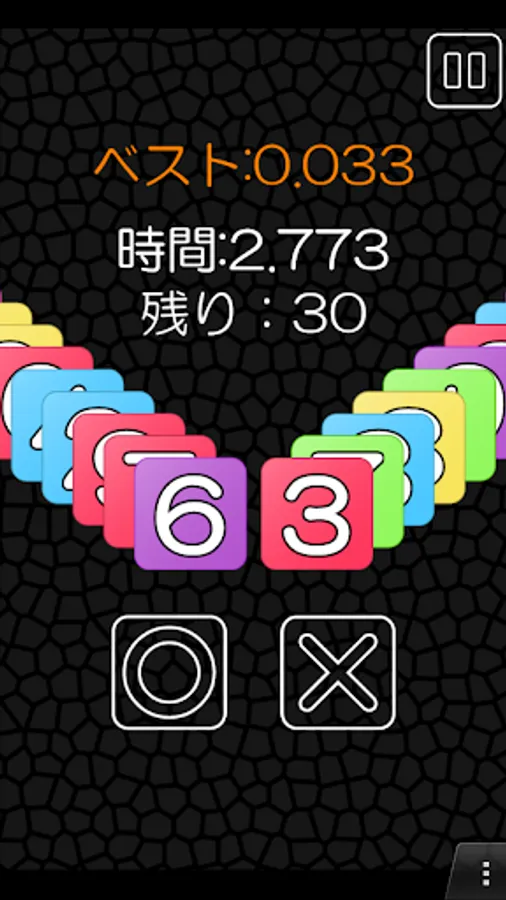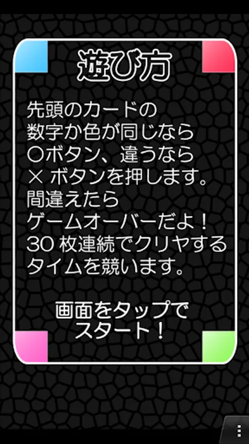 By comparing the left and right of the card, if the color or number is the same ○, if different tries to push the × button.