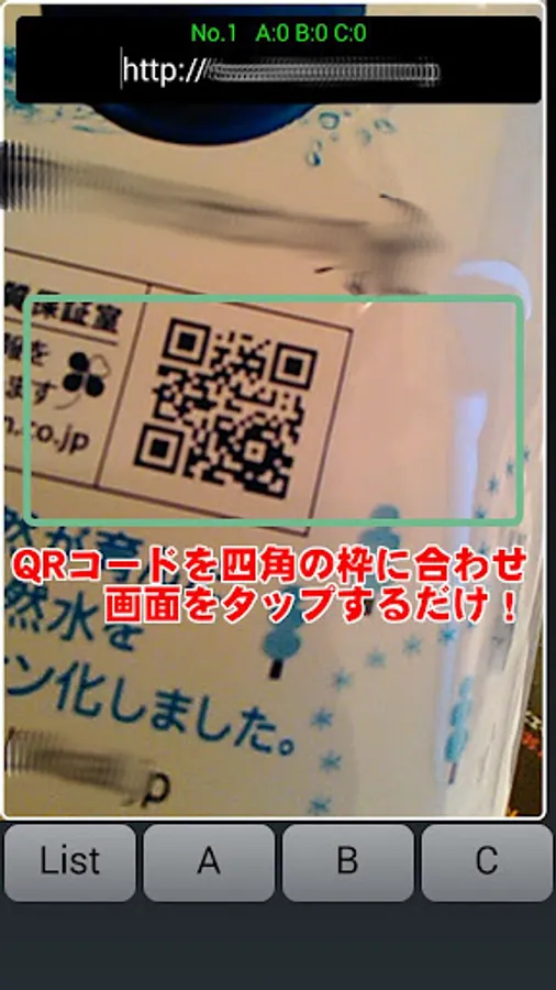 Go to. In addition, by pressing the lower left of the QR button, during the transition to the camera screen, information of the bar code you tap the top of the screen