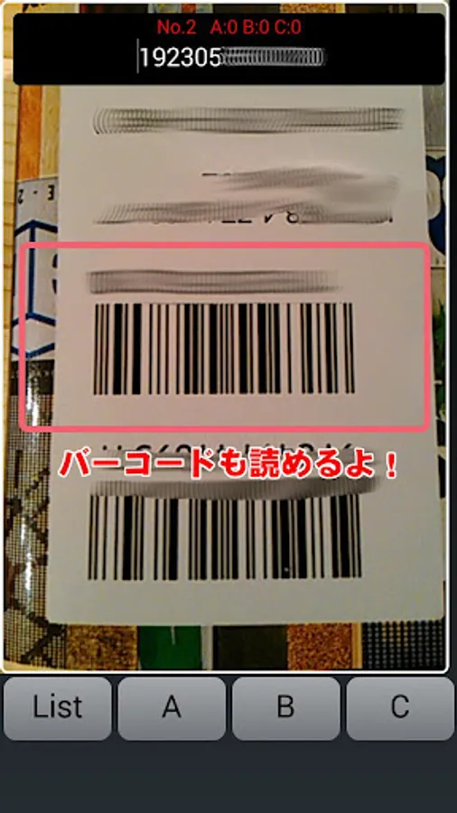The top list, the total number of the bar code previously loaded, and, A and counted in each code, B, respectively C