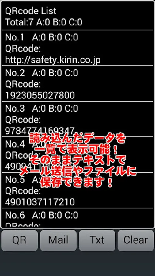 2) screen by pressing the Txt button at the bottom, just below the external storage, file name: will be saved in QRDeta.txt.