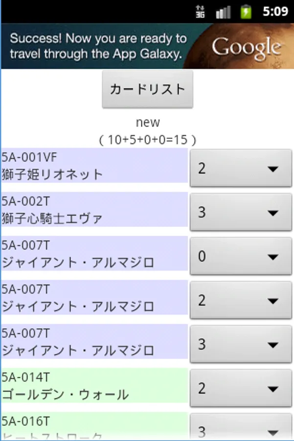 By pressing the "card list" button, a transition to the card list screen, you can add a card to the recipe.