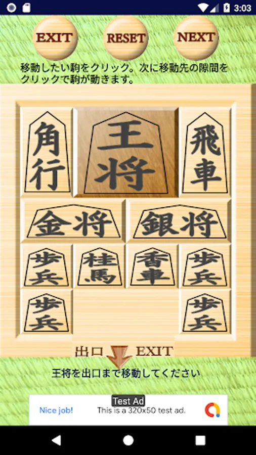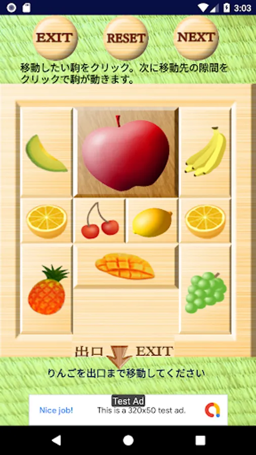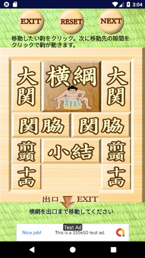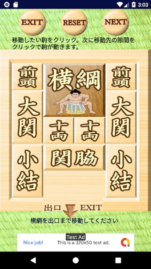 駒を一つづつ動かして、大きな正方形の駒を出口に導いていくスライディングブロックパズルです。