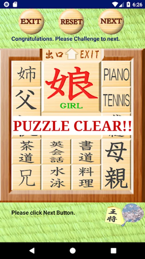 空いている隙間を利用して、各駒を移動させて、大きな駒(王将、娘、救急車、横綱)を木枠盤の中央上の空いている部分から運び出すとパズルクリアです。