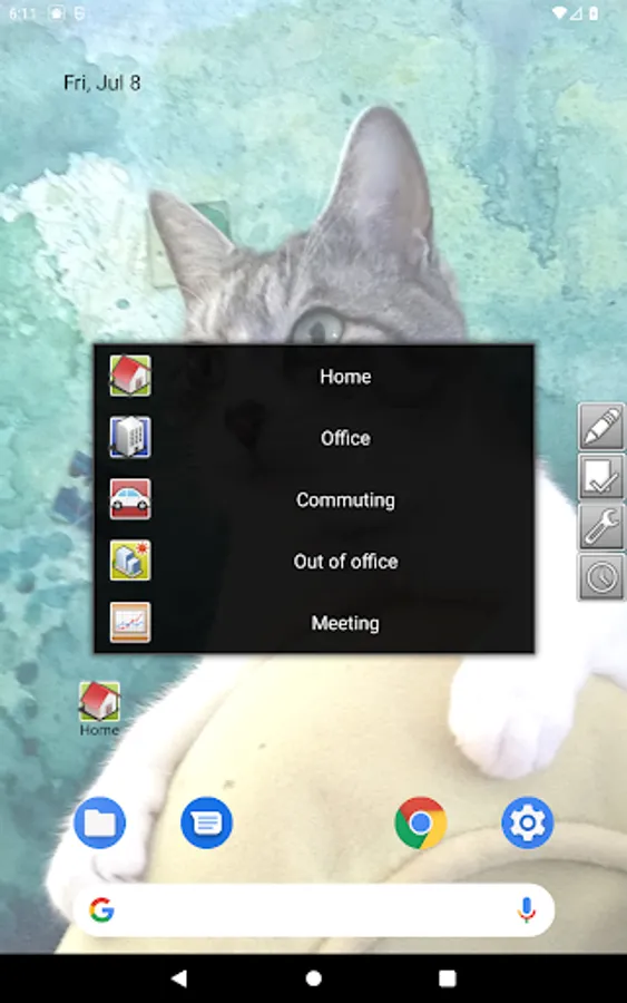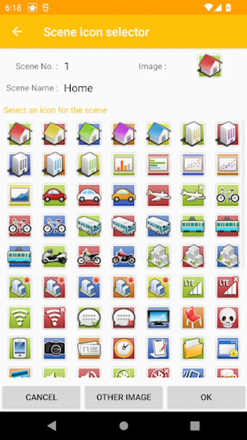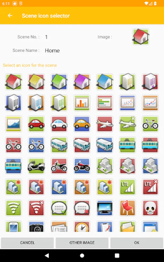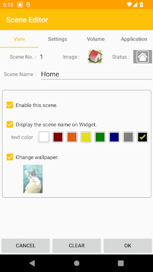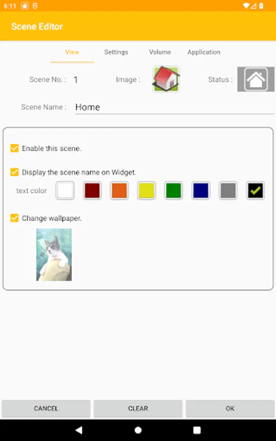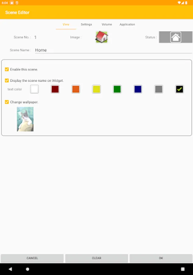 When you tap the widget once or the notification bar, the scene selection popup menu and the option menu are displayed. Select [Scene Edit] of pencil mark on the option menu. And tap a scene in the popup menu. Then scene editor is displayed. You can edit the settings of the scene.