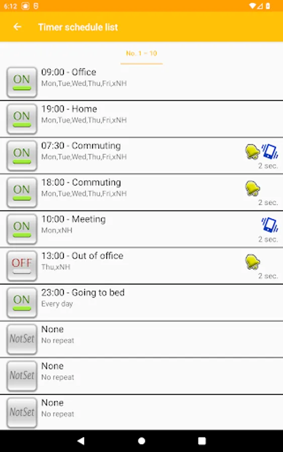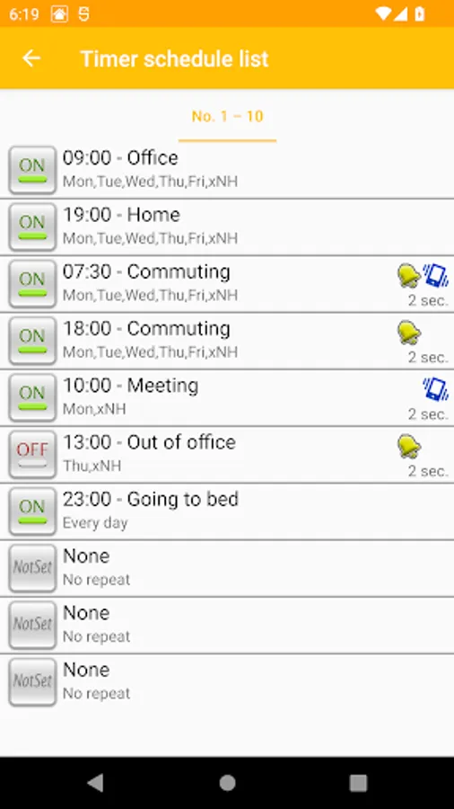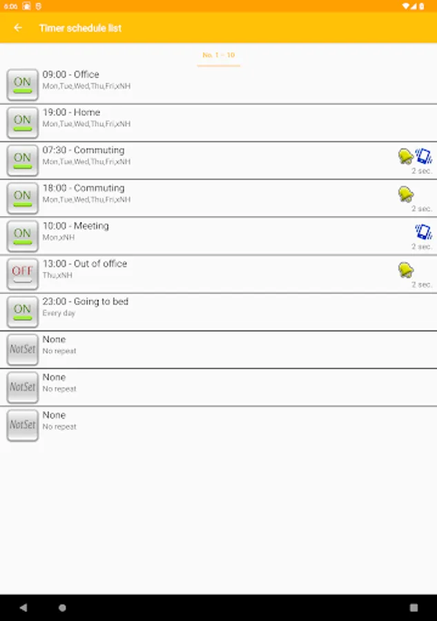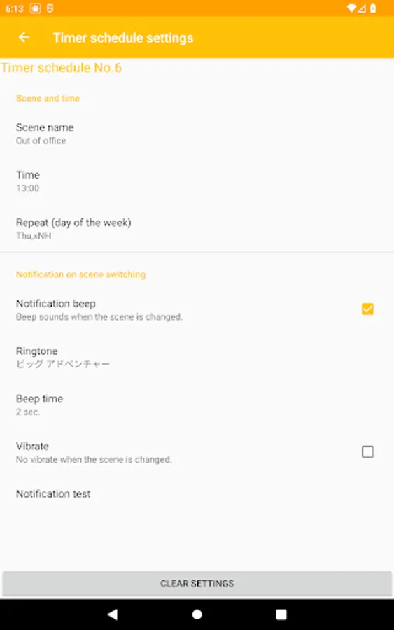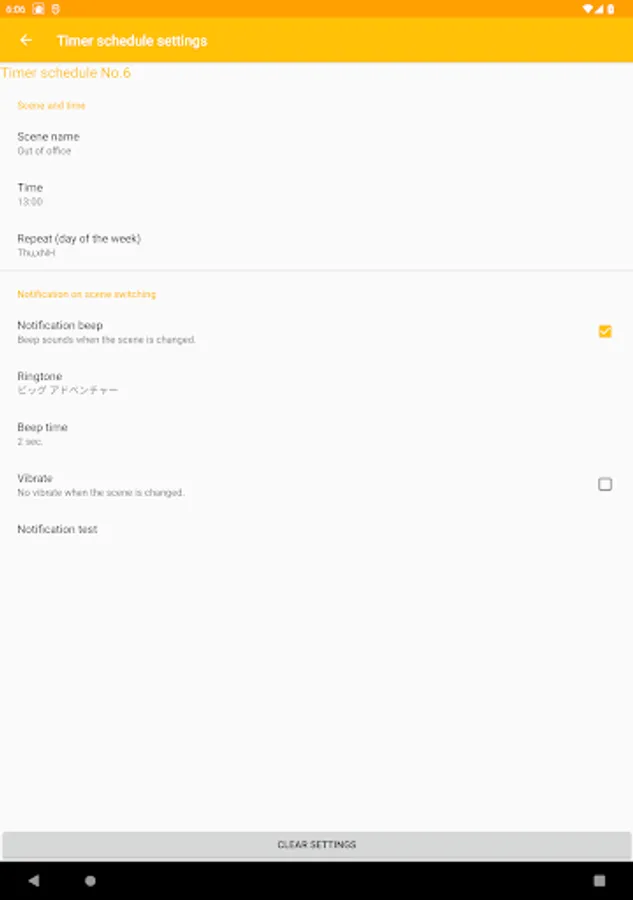 Timer schedule list will be displayed. And tap a row in the schedule list. You can set timer schedule for scene switching.