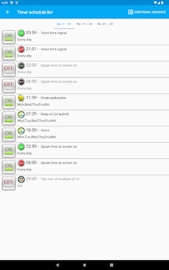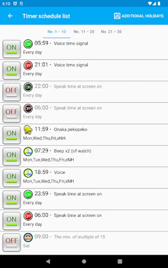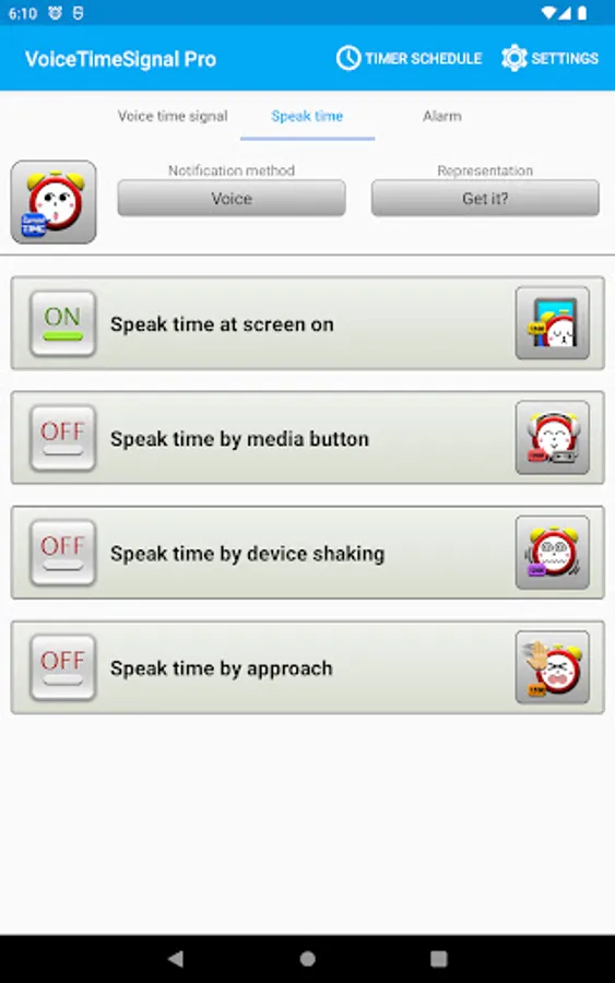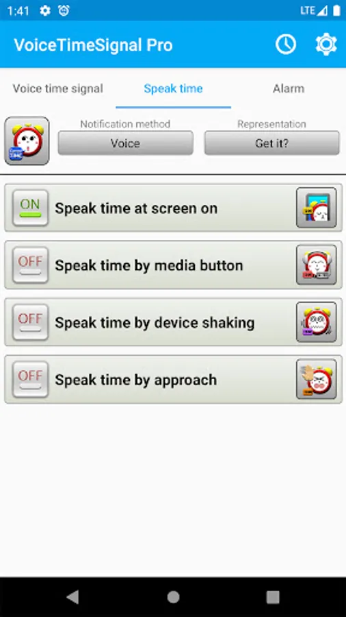 The app can also play a specified sound as time signal instead of the voice.