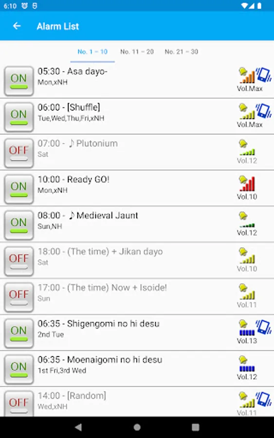 If you have set the number of times to sound as same as the hours, the app can play the time signal sound like a cuckoo clock or a wall clock.