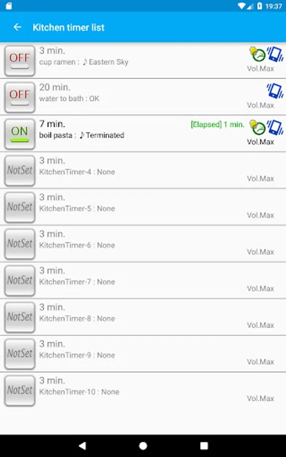 4. Kitchen timer feature has been added.(The app notifies with voice or specified sound after the specified time elapsed.)